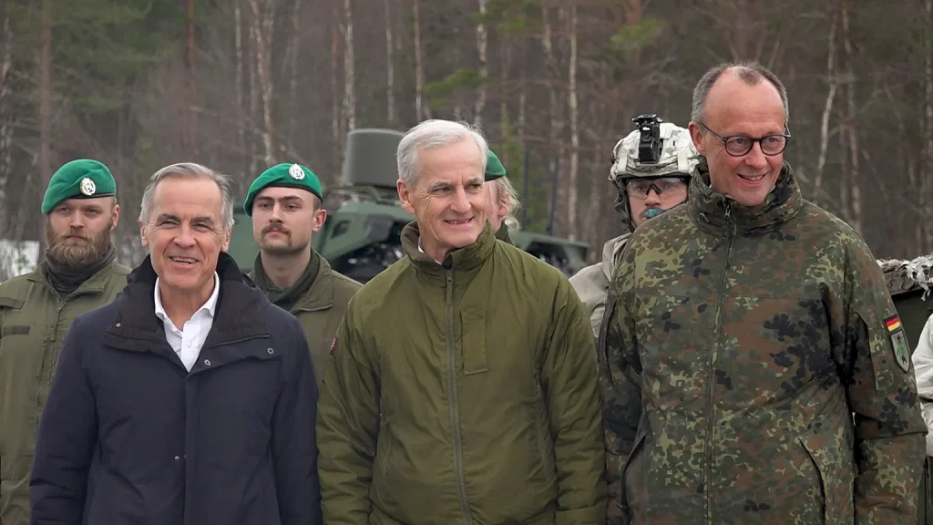 Bardufoss (13 de marzo de 2026).- El primer ministro de Canadá, Mark Carney, se reunió este viernes con el primer ministro de Noruega, Jonas Gahr Støre, y con el canciller de Alemania, Friedrich Merz, durante una visita oficial a la localidad de Bardufoss, en el norte de Noruega.